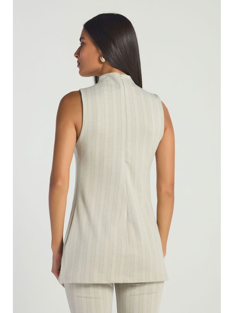 A Blusa listrada possui modelagem alongada, gola levemente alta e ziper traseiro para fechamento. Uma blusa moderna e elegante para compor os seus melhores looks.