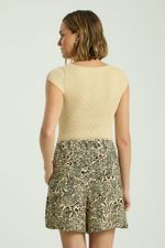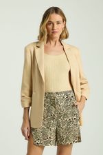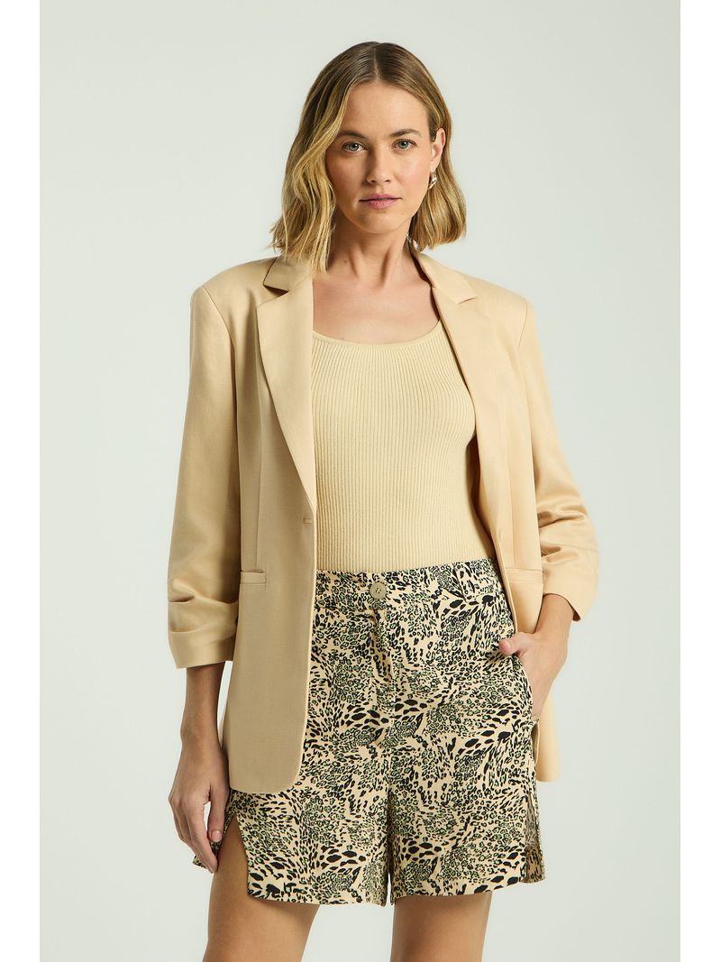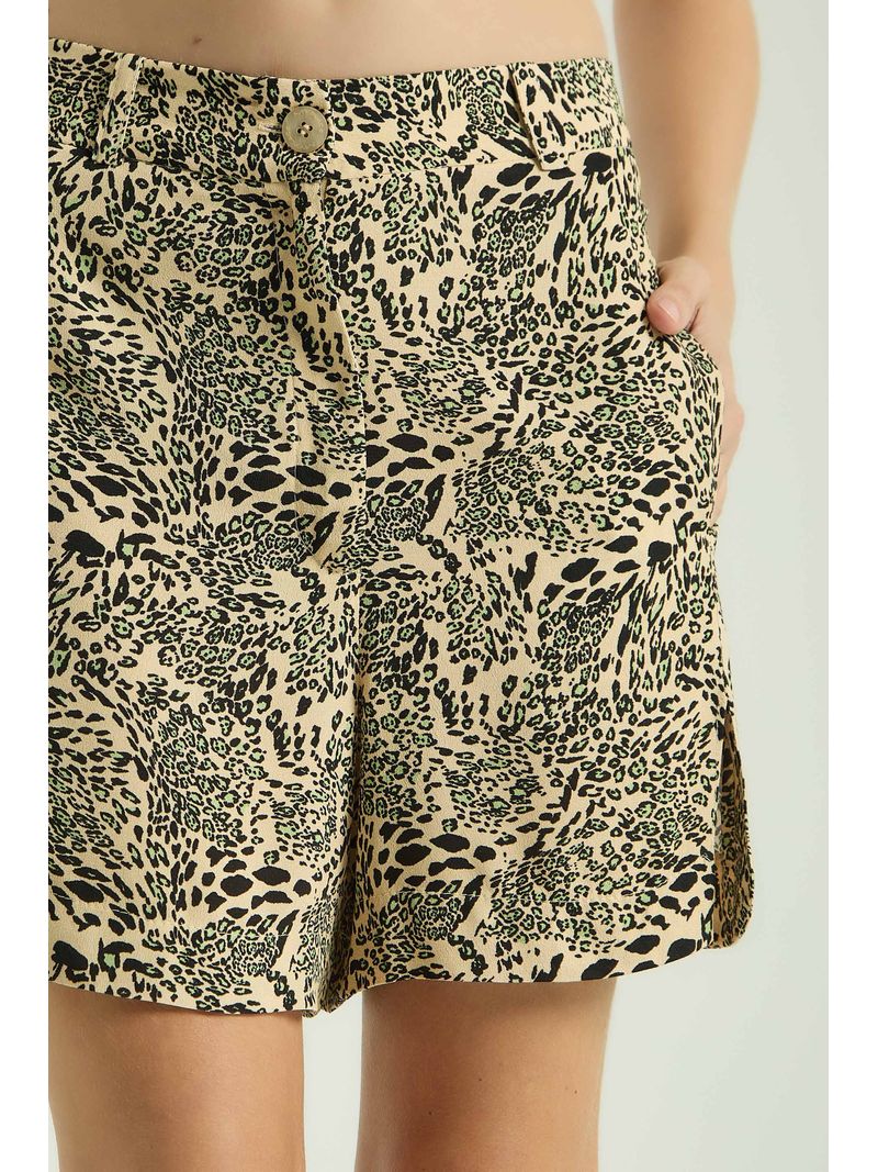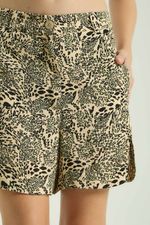 A Bermuda estampada possui bolsos laterais, fechamento frontal por zíper e botão, espaço para passantes e fendas laterais na barra. Uma moda atemporal e ousada,a bermuda com estampa animal print traz personalidade instantânea ao visual.