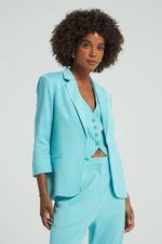 O Blazer possui mangas 7/8 com franzimentos laterais, botão frontal para fechamento e barra reta. Com corte alinhado e caimento estruturado, o blazer é uma peça-chave para elevar produções com praticidade e estilo.