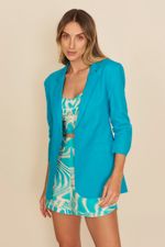 Este Blazer, confeccionado em Linho, é versátil e confortável, pois conta com fechamento frontal por colchete e mangas 7/8.