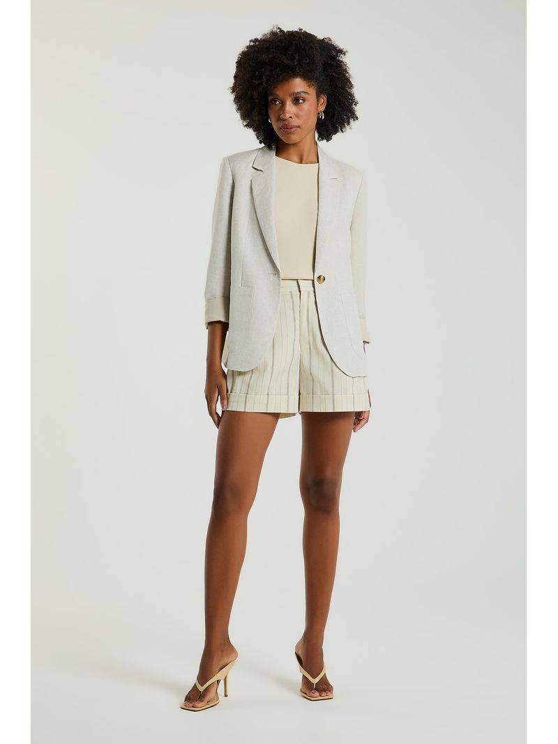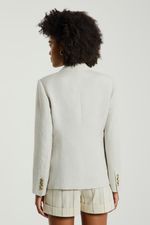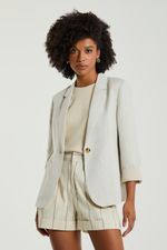 O Blazer, de modelo alongado, possui mangas longas com botões traseiros na barra da manga, fechamento frontal por maxi botão, bolsos frontais e barra assimétrica.Com corte alinhado e caimento estruturado, o blazer é uma peça-chave para elevar produções com praticidade e estilo.