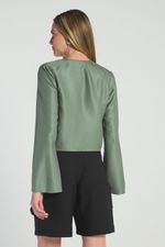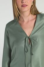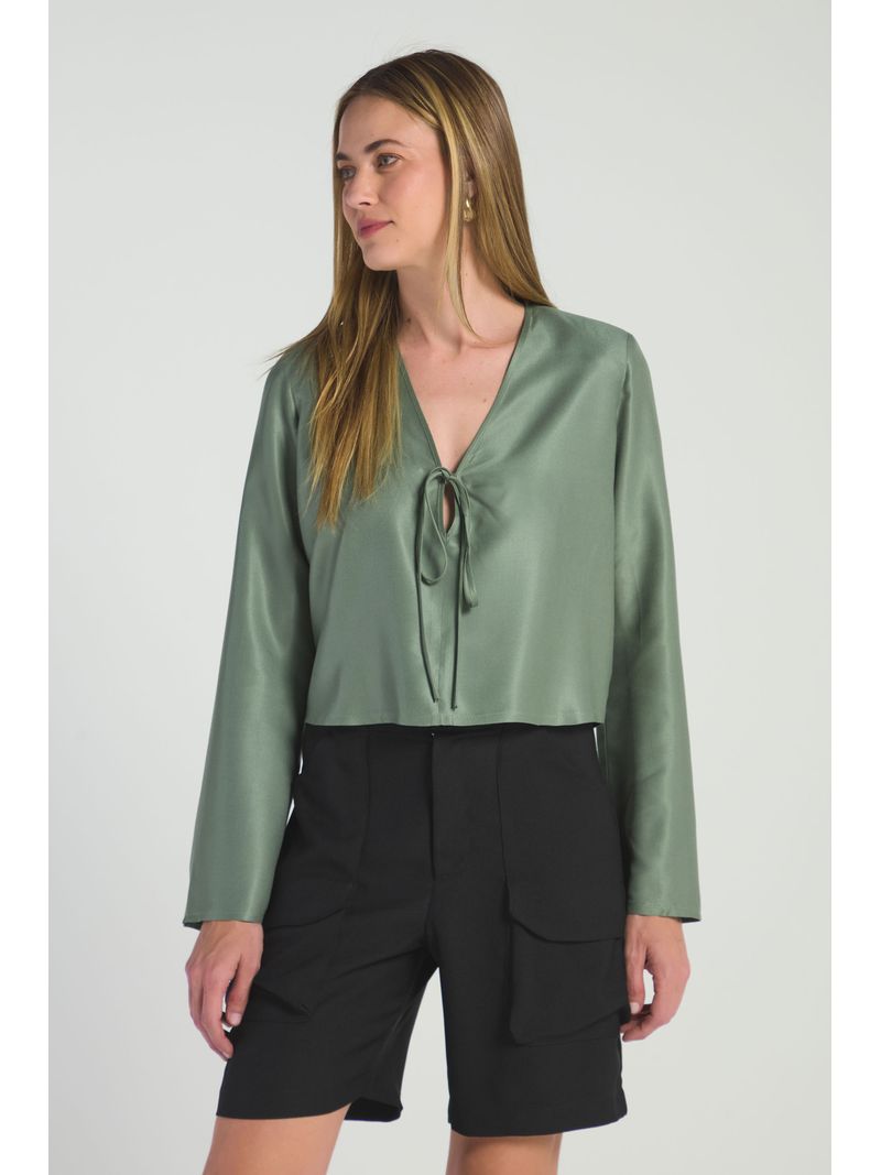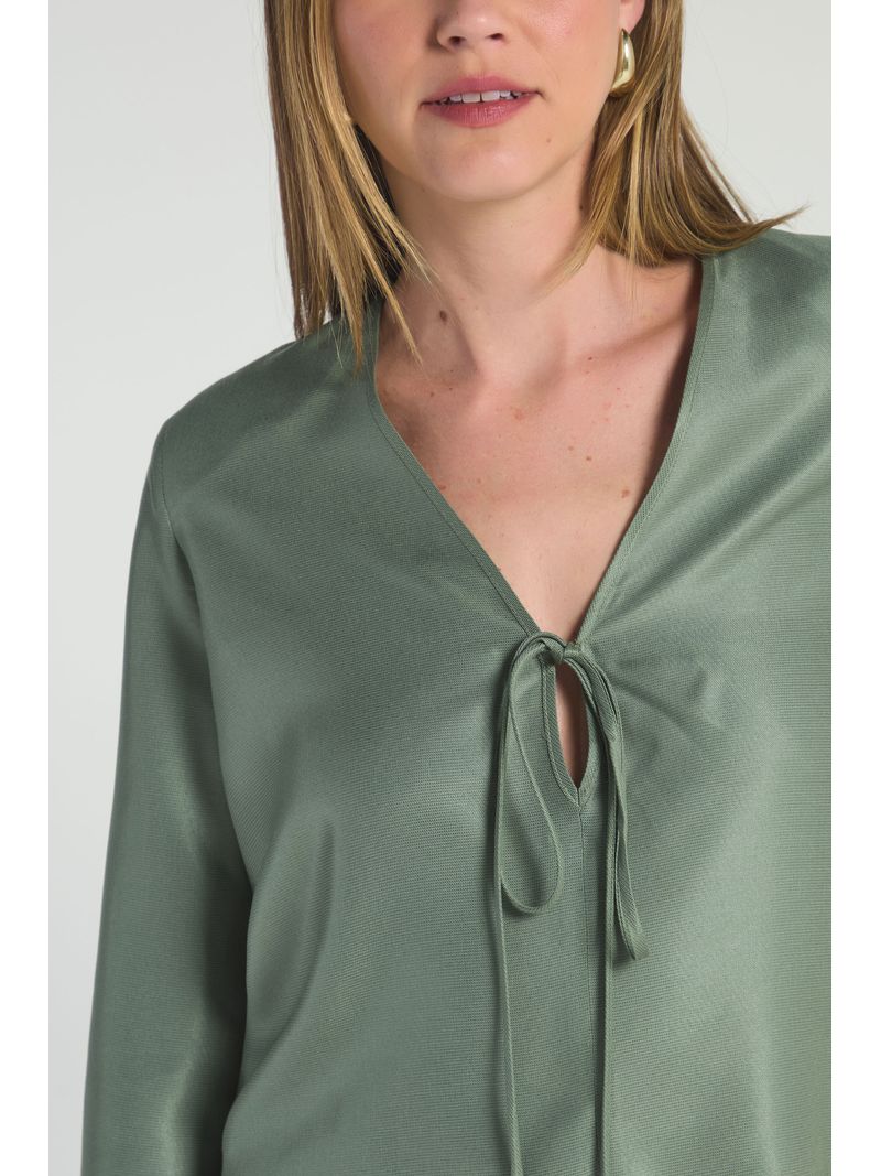 A Blusa conta com decote em V, amarração frontal no busto, mangas longas e levemente amplas e modelagem solta ao corpo. Uma blusa perfeita para quem busca unir conforto e delicadeza em um mesmo look.