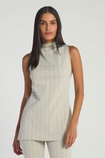 A Blusa listrada possui modelagem alongada, gola levemente alta e ziper traseiro para fechamento. Uma blusa moderna e elegante para compor os seus melhores looks.