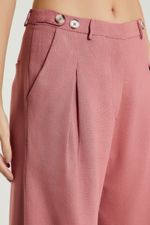 A Calça de alfaiataria, confeccionada em linho, possui pregas frontais, bolsos laterais e detalhes com botões laterais no cós. A calça de alfaiataria é ideal para compor produções que pedem sobriedade com estilo.