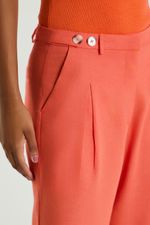 A Calça de alfaiataria, confeccionada em linho, possui pregas frontais, bolsos laterais e detalhes com botões laterais no cós. A calça de alfaiataria é ideal para compor produções que pedem sobriedade com estilo.