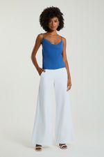 A Calça, confeccionada em sarja, possui modelo pantalona com zíper lateral para fechamento, bolsos laterais e traseiros e espaço para passantes. A calça pantalona une conforto e sofisticação com seu corte solto ao corpo. O comprimento alongado traz destaque à peça e garante um visual imponente e feminino.