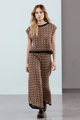 A Calça, confeccionada em tricot com ponto detalhado, possui barra ampla e cós de cor diversa. Combine com cropped em tricot para criar uma composição moderna e aconchegante.