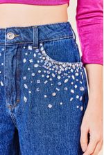 A Calça Jeans possui modelagem reta, bolsos laterais, bordados frontais e fechamento por zíper e botão. Uma peça versátil e elegante para ser combinada com as blusas da coleção de inverno 24.
