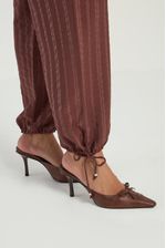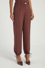 A Calça, de modelo jogging, conta com bolsos laterais, fechamento frontal por zíper e botão e amarração na barra. Além disso, a calça listrada apresenta fios em lurex, que a deixam ainda mais elegante. Combine com blusa de mesmo estilo e arrase.