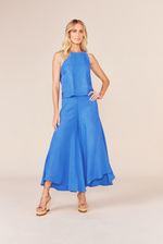 A Calça, de modelagem pantalona, possui bolsos laterais, zíper lateral para fechamento e barra assimétrica e fluída. Combine com croppeds e regatas para um look incrível de verão!