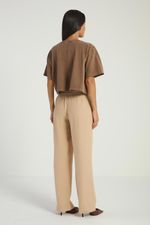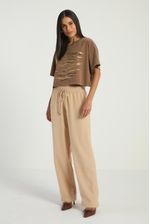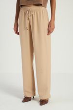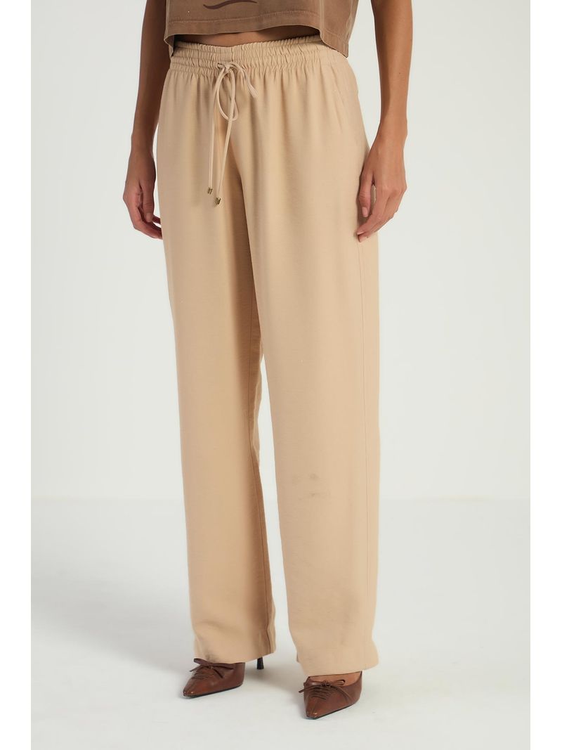 A Calça lisa, de modelo reto, conta com bolsos laterais, elástico no cós e amarração frontal. Ideal para quem busca conforto e praticidade em looks modernos e elegantes.