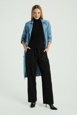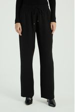 A Calça lisa, de modelo reto, conta com bolsos laterais, elástico no cós e amarração frontal. Ideal para quem busca conforto e praticidade em looks modernos e elegantes.