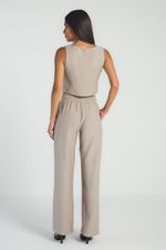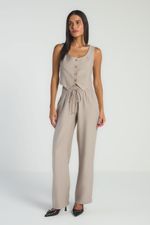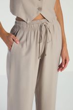 A Calça lisa, de modelo reto, conta com bolsos laterais, elástico no cós e amarração frontal. Ideal para quem busca conforto e praticidade em looks modernos e elegantes.