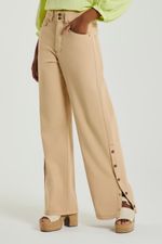 A Calça em sarja possui bolsos laterais e traseiros, fechamento frontal com botões duplos e fenda lateral na barra com detalhes em botões. A calça de sarja une estilo e praticidade, sendo uma alternativa elegante ao jeans. Aposte nesse modelo moderno e cheio de personalidade.