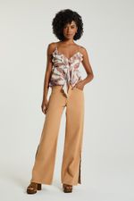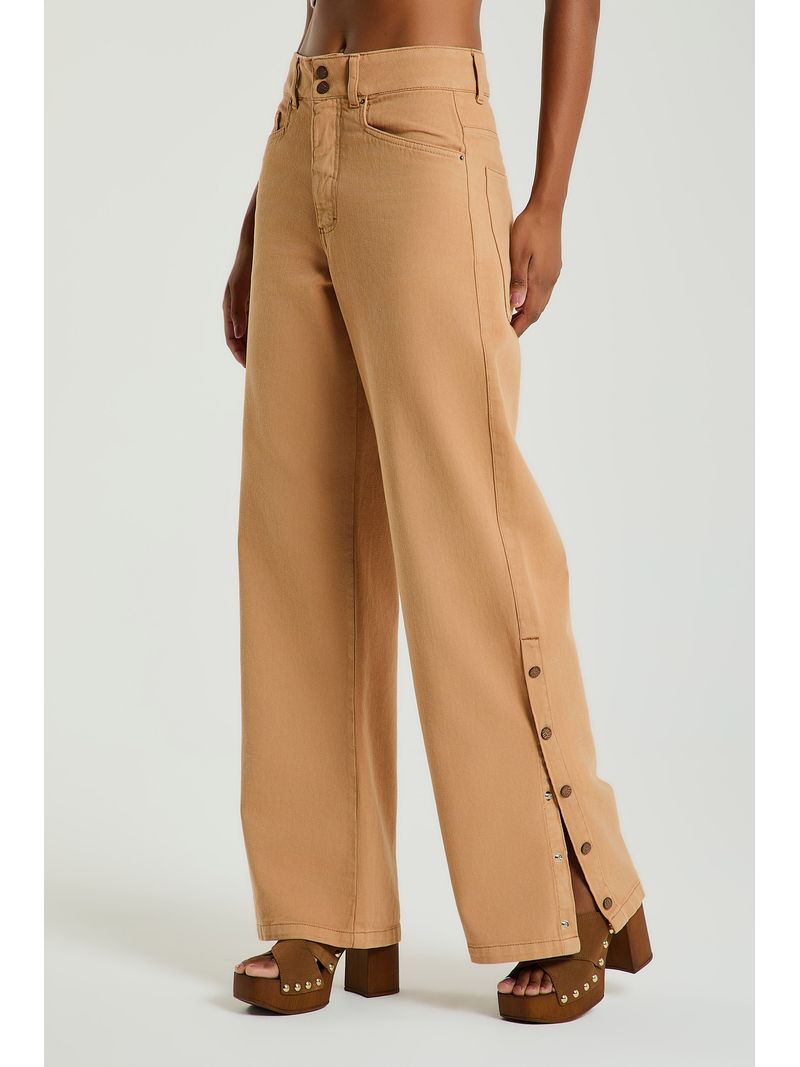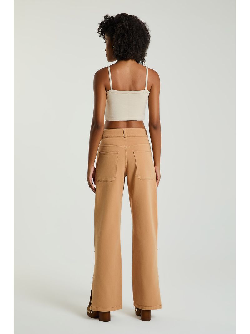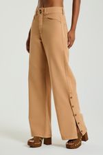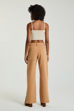 A Calça em sarja possui bolsos laterais e traseiros, fechamento frontal com botões duplos e fenda lateral na barra com detalhes em botões. A calça de sarja une estilo e praticidade, sendo uma alternativa elegante ao jeans. Aposte nesse modelo moderno e cheio de personalidade.