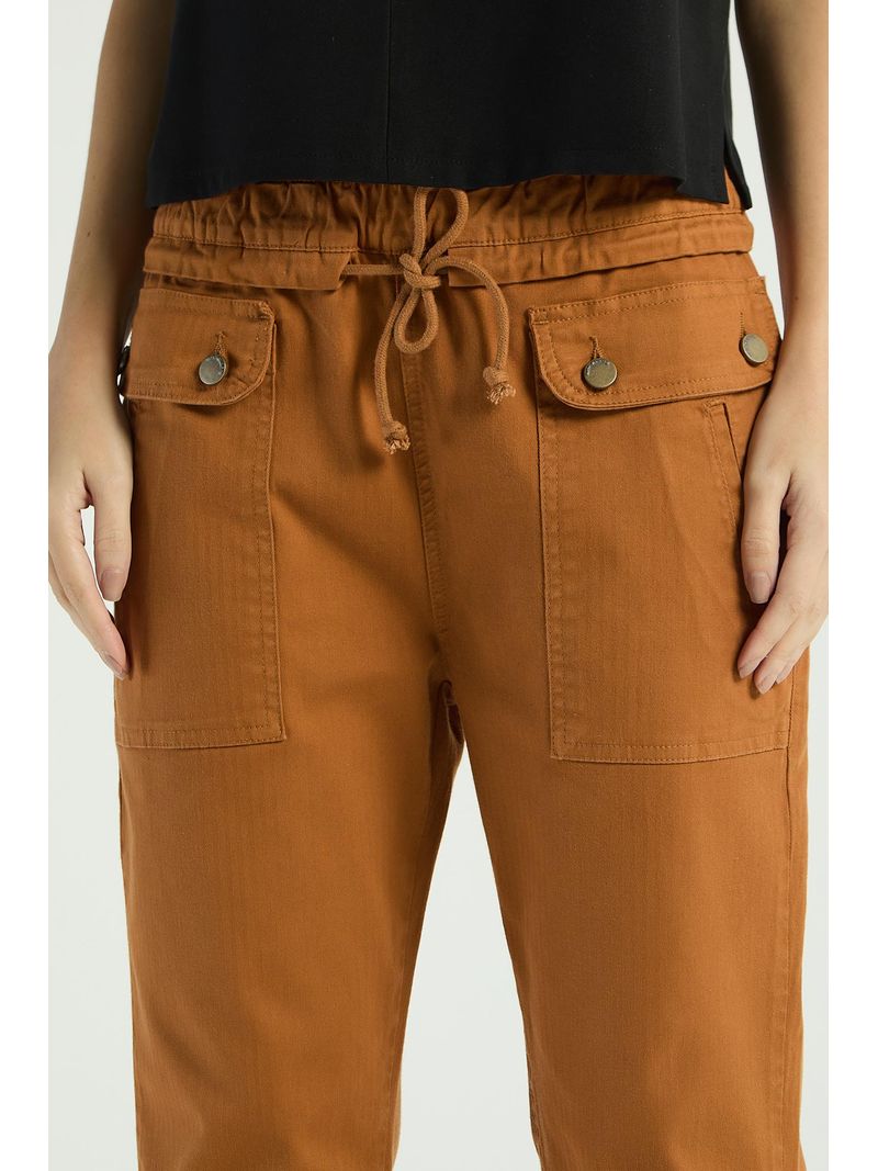 A Calça, confeccionada em sarja, apresenta modelagem cenoura, bolsos frontais e traseiros, elástico e amarração no cós. A calça em sarja garante um visual moderno e cheio de atitude.