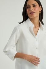 A Camisa oversized, confeccionada em tecido tricoline, possui bordados em seu comprimento, mangas 7/8, abotoamento frontal para fechamento e barra assimétrica, com pequena fenda lateral. Combine a camisa bordada com shorts jeans ou estampados para um looks casual-chic.