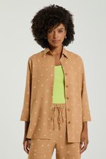 A Camisa bordada foi confeccionada em linho e possui modelo oversized, mangas 3/4 e abotoamento frontal para fechamento. Aposta moderna com shape amplo, ideal para quem busca estilo urbano e conforto na medida certa.
