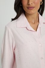A Camisa listrada possui modelo oversized, mangas 3/4, termocolantes em seu comprimento e abotoamento frontal para fechamento. Versátil e estilosa, essa camisa combina com tudo — de um look casual até composições mais formais.