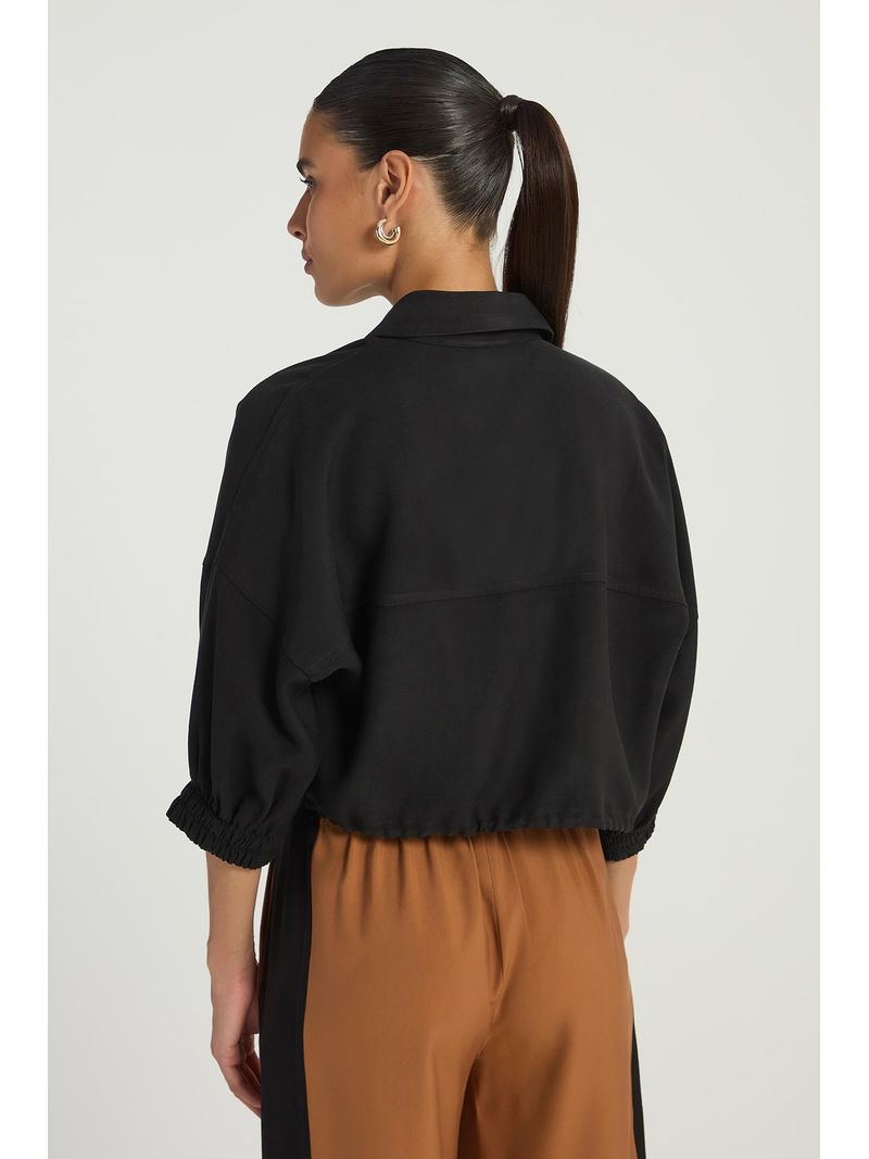 O Casaqueto, confeccionado em crepe, conta com mangas 7/8, gola, abotoamento frontal e elástico na barra. Ideal para um visual sofisticado, sem abrir mão do conforto.