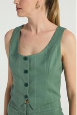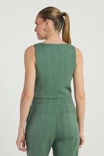 O Colete listrado conta com fios em lurex, decote recondo, abotoamento frontal para fechamento e barra assimétrica. Combine com calça de mesmo tecido e crie um look que segue as maiores tendências da estação.