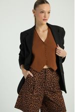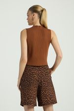 O Colete, confeccionado em tricot canelado, possui decote em V, fechamento frontal por botões e barra assimétrica. Uma trend da estação, combinada a um tecido atemporal, perfeita para compor os seus looks de inverno.