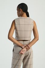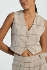 O Colete xadrez conta com decote em V, fechamento frontal por botões, barra assimétrica com pequena fenda frontal. Combine com short ou calça xadrez para formar um look clássico e atemporal.