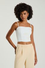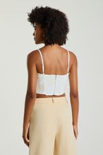 O Cropped bordado apresenta decote reto, alças finas reguláveis, zíper traseiro para fechamento e lastex nas costas, que permite um melhor ajuste ao corpo. O cropped bordado pode ser combinado com peças lisas ou de mesmo tecido da coleção, e é ideal para valorizar produções leves e modernas.