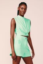 Por isso, o Cropped foi confeccionado sem mangas e modelagem curta, ideal para ser combinado com shorts e saias de cintura alta para criar diversos looks que passam uma imagem descolada e, ao mesmo tempo, elegante.