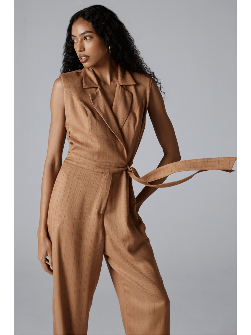 O Macacão, confeccionado com tecido listrado, possui decote em V com gola transpassada, bolsos laterais, cinto-faixa para amarração e elástico traseiro na cintura. O macacão é confortável e estiloso, um must-have do guarda-roupa feminino. *A tonalidade das cores pode variar de acordo com a sua tela/monitor.