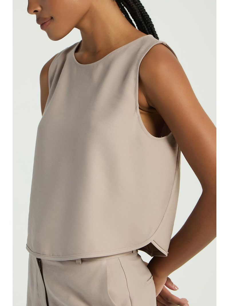 A Regata conta com decote redondo, alças largas, recorte vazado traseiro com fechamento por botão e modelagem solta ao corpo. Além disso, a regata possui transpasse lateral e barra assimétrica. Ideal para compor looks casuais, trazendo conforto e estilo.