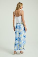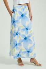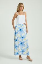 A Saia estampada, de comprimento longo, possui bolsos laterais, fechamento por zíper e fenda na barra. A saia transmite delicadeza e feminilidade com sua estampa atemporal. Combine com camisetas e croppeds lisos da coleção para um look perfeito para ao verão.