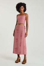 A Saia longa, de modelo pareô, apresenta transpasse frontal e amarração lateral. Combine a saia pareô com cropped de mesmo tecido para um look que transmite feminilidade e romantismo.