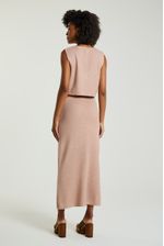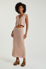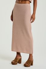 A Saia, de comprimento longo, foi confeccionada em tricot e possui modelagem levemente justa ao corpo. Combine com colete de tricot e crie um look atemporal e confortável.
