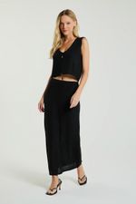 A Saia, de comprimento longo, foi confeccionada em tricot e possui modelagem levemente justa ao corpo. Combine com colete de tricot e crie um look atemporal e confortável.