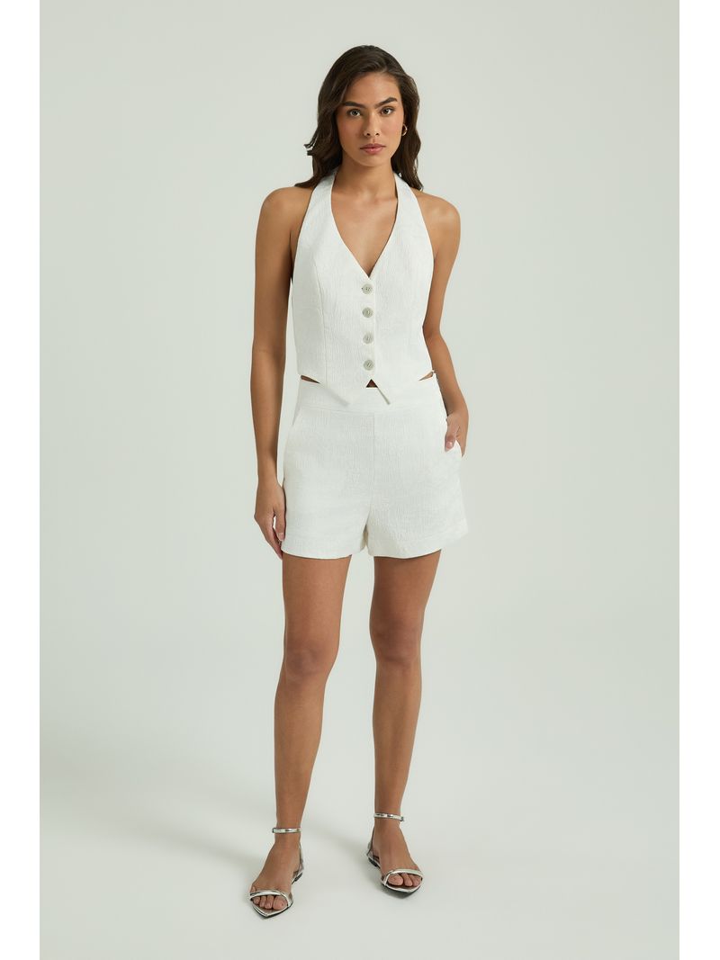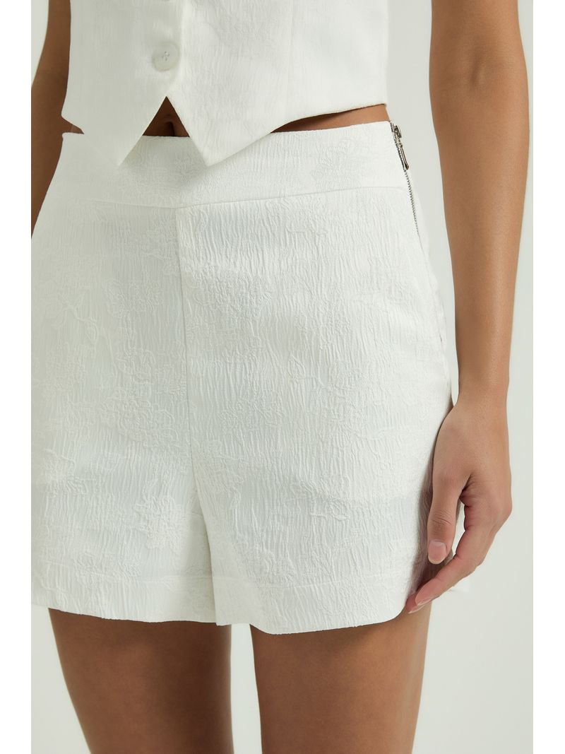 O Short, confeccionado em tecido jacquard, possui bolsos laterais e zíper lateral para fechamento. Combine o short com colete de mesmo tecido para um look moderno, que segue as grandes tendências do mundo da moda.