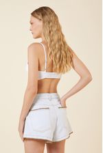 O Short jeans conta com bolsos laterais e traseiros, bordados e fechamento frontal por zíper e botão. Os bordados dão um boost no short jeans, que é uma éça atemporal e indispensável no closet feminino.