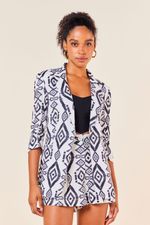 O Short, confeccionado em linho, possui bolsos laterais, pregas frontais, espaço para passantes e fechamento por zíper e botão. Ideal para ser combinado com blazer de mesma estampa, seguindo as maiores tendências da estação.