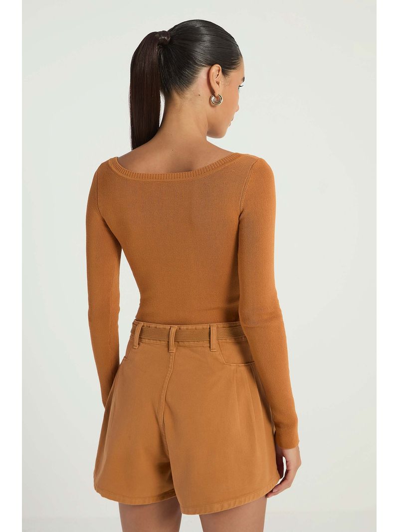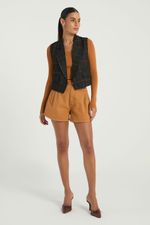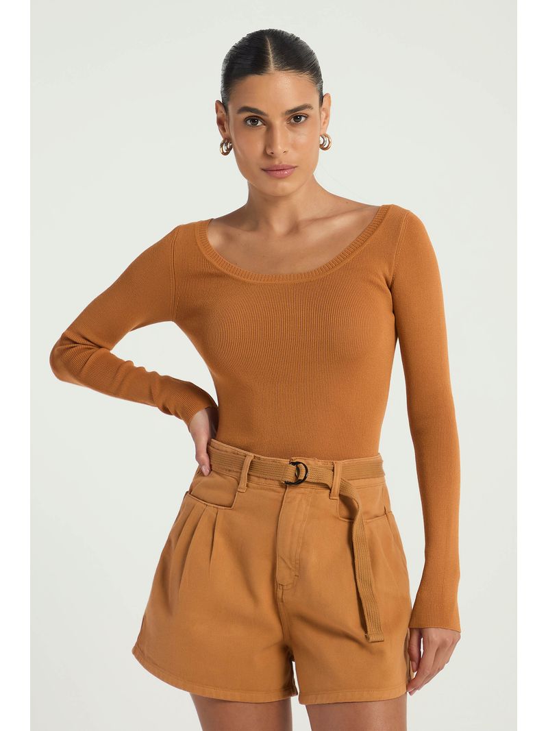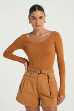 O Short, confeccionado em sarja, possui bolsos frontais, pregas laterais e frontais, fechamento padrão por zíper e botão e cinto removível. Versátil, fica incrível tanto com peças básicas quanto com estampas ousadas.