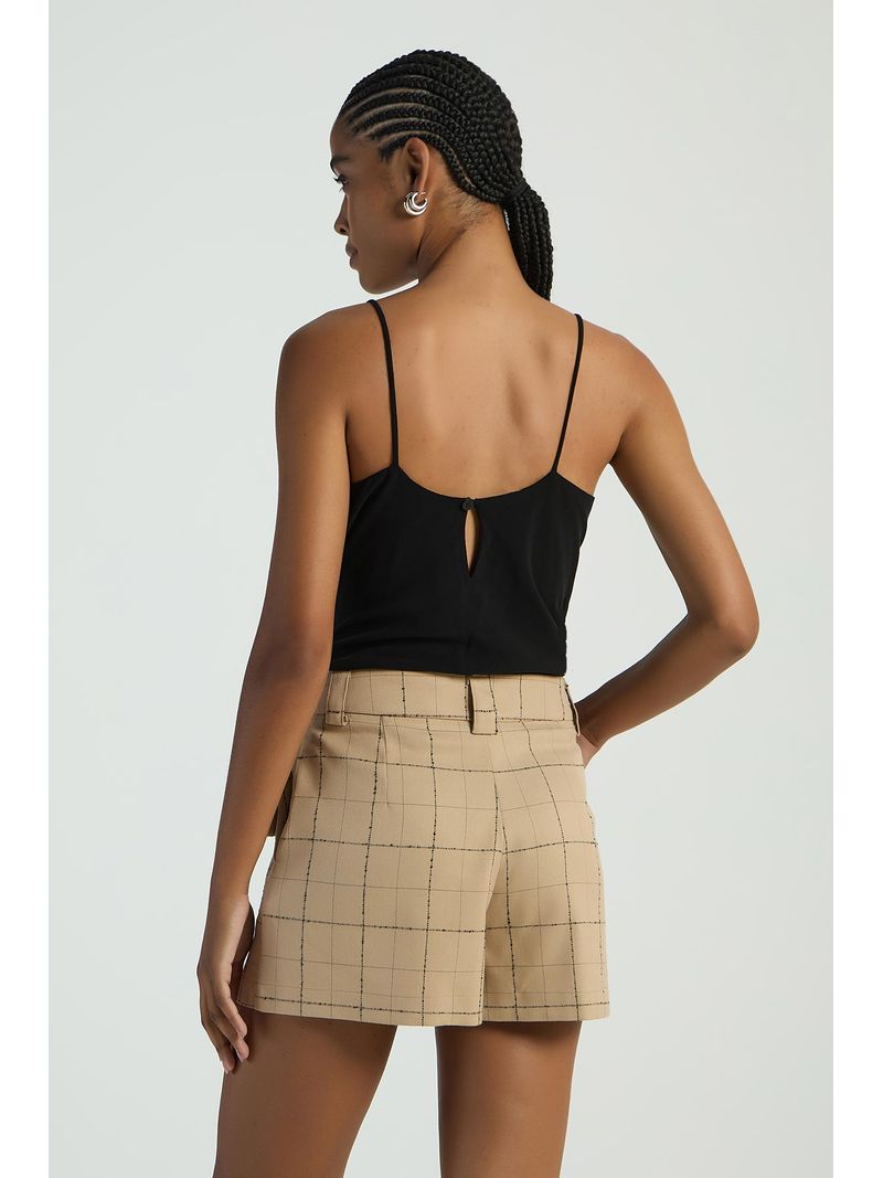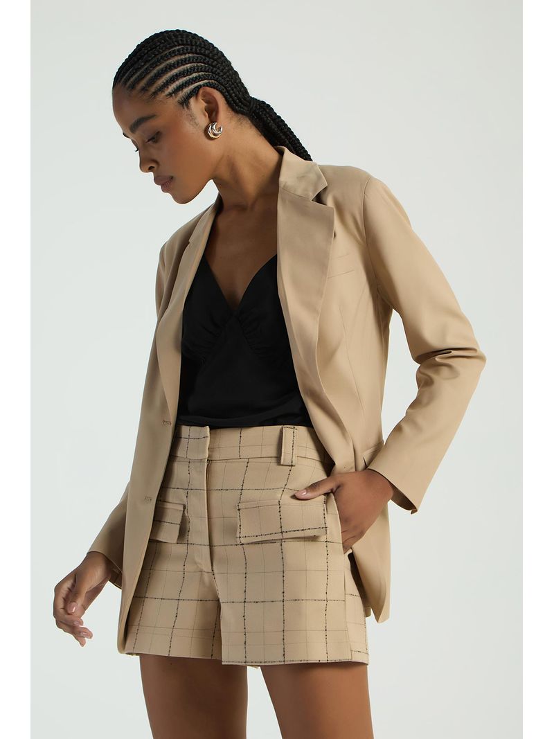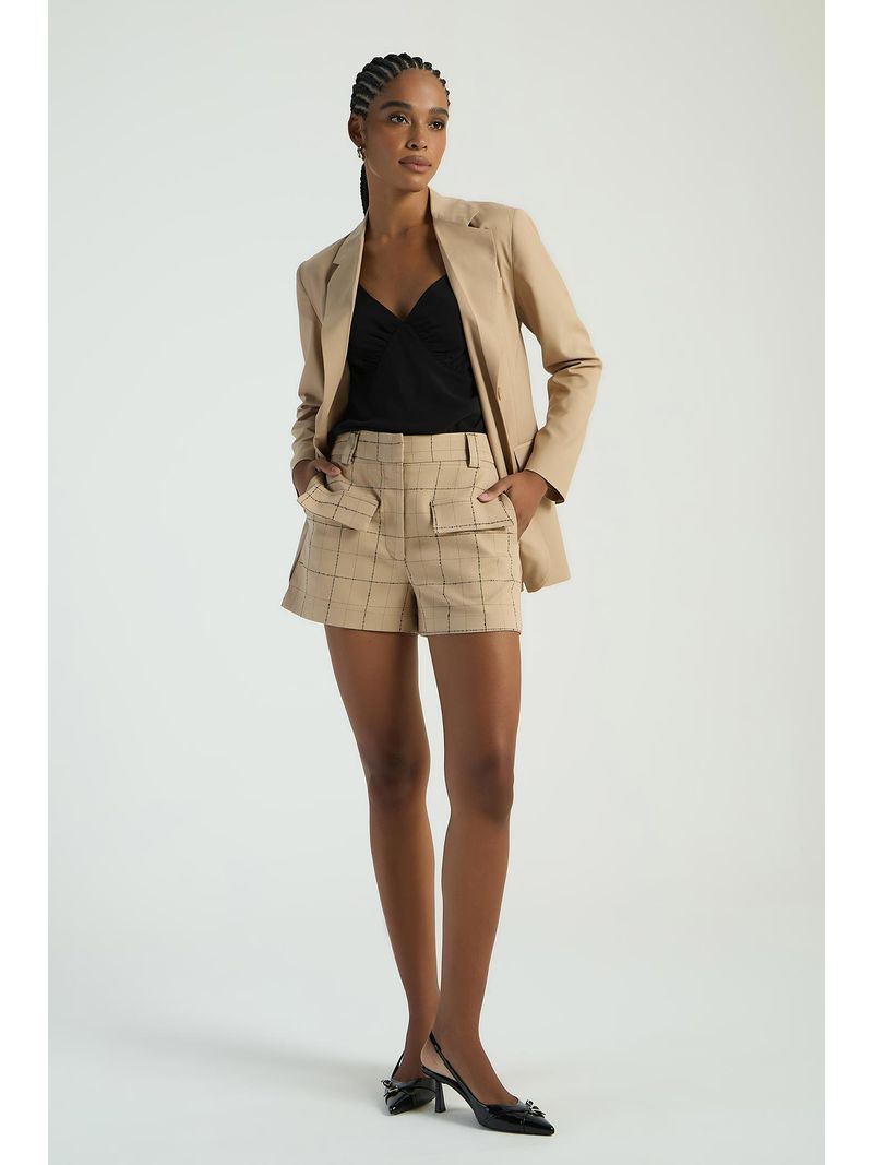 O Short xadrez conta com bolsos laterais, detalhes de bolsos frontais, espaço para passantes e fechamento frontal. Um clássico da moda, que traz elegância e atemporalidade ao seu look.