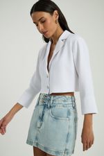 O Spencer apresenta decote em V, gola, abotoamento frontal duplo com maxi botões e mangas 7/8. O spencer traz elegância imediata ao look, com modelagem curta e estruturada. Ideal para composições sofisticadas com estilo contemporâneo.