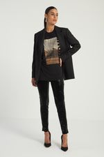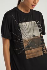 A T-Shirt apresenta mangas curtas, gola redonda, modelo oversized, silk e bordado frontais. Combine com calças e shorts da coleção para um visual casual e despojado.