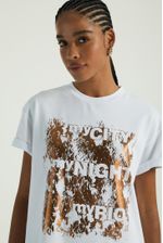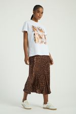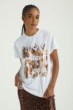 A T-Shirt conta com modelagem oversized, mangas curtas, gola redonda e silk frontal. Perfeita para quem busca um visual despojado-chic para o dia a dia.
