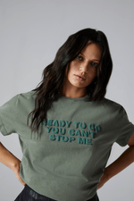 A T-shirt conta com mangas curtas, gola redonda, modelagem ampla e silk frontal. Uma opção despojada e cheia de personalidade para compor os seus looks casuais.