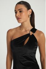 O Vestido, de comprimento curto, conta com modelagem de um ombro com detalhe em triangulo no ombro, recorte vazado frontal e alça larga. Ideal para quem busca um vestido sofisticado e jovial para compor os melhores looks night.