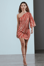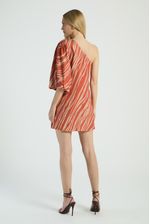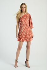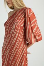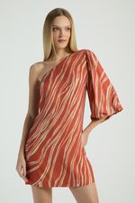 O Vestido estampado, de comprimento curto, possui modelo de um ombro só com manga bufante 7/8 e modelo solto ao corpo. Um vestido que traz personalidade e te deixa por dentro das maiores tendências da estação.
