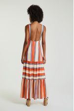 O Vestido longo listrado conta com decote em V, recortes e franzimentos na saia, decote quadrado nas costas e zíper traseiro para fechamento. O vestido tem modelo solto ao corpo e é perfeito para quem busca praticidade e conforto em um look único.