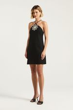 VESTIDO LINHO APLICAÇÃO FLOR-PRETO