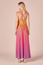 O Vestido, de comprimento longo, possui decote reto, lastex nas costas, alças trançadas cruzadas nas costas com amarração. Um vestido fluido, que traz estilo e feminilidade ao seu look.