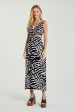 O Vestido estampado possui decote em V frontal e traseiro, aberturas na altura da cintura e zíper traseiro para fechamento. Uma opção elegante e cheia de personalidade para compor os seus melhores looks.
